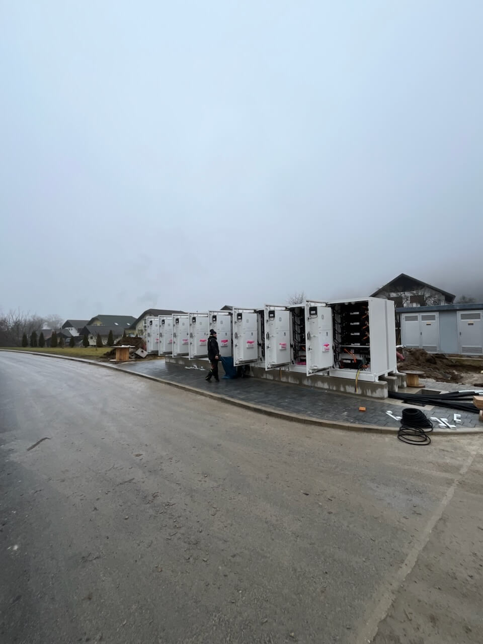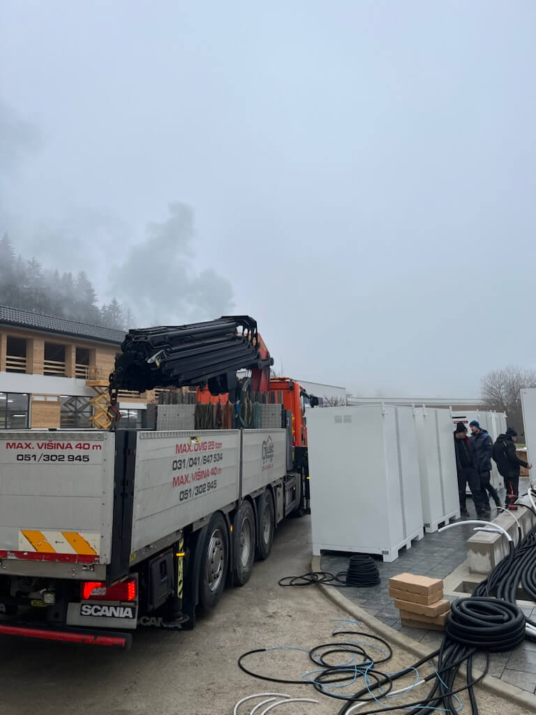 Kljub zahtevnim vremenskim pogojem je bila montaža baterijskih hranilnikov in glavne omare ROH1 izvedena brezhibno.